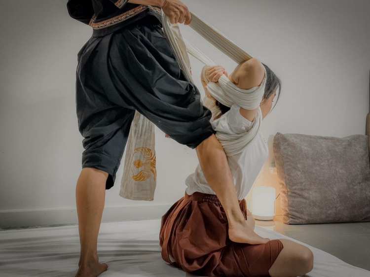 Le massage thaï traditionnel aux techniques variées . combinant la science du massage thaïlandais avancé et l’utilisation de divers équipements de massage tels que les bambous, les foulards…Les bambous ont un effet drainant et relaxant.les foulards aident à étirer les tendons. Utilisation d’huile végétale pour détendre les muscles.