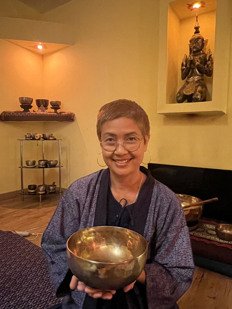 » Je suis Maître Reiki » J’ai commencé avec des croyances et un intérêt spirituel. Je pratique la méditation depuis longtemps, parce que je suis bouddhiste, que je peux sentir une énergie spéciale me parvenir et que je peux transmettre l’énergie à la plupart des clients grâce à mon massage. J’ai réussi le cours de guérison du Reiki à Bangkok en Thaïlande où la thérapie Reiki est une méthode de traitement .J’ai aussi réussi le certificat de séminaire dans le yoga spirituel, le fondamental de l’énergie universelle humaine.J’ai poursuivi ma formation en France jusqu’au niveau 4 (Maître Reiki)..maintenant ,je suis confiante dans ma connaissance du Massage et du Reiki comme thérapie énergétique interne.